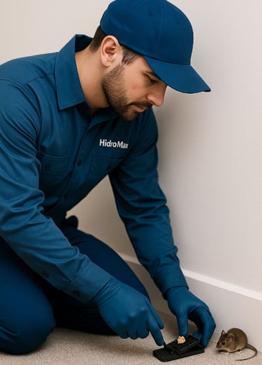 Eliminação segura de roedores, pontos de acesso e focos de infestação.
